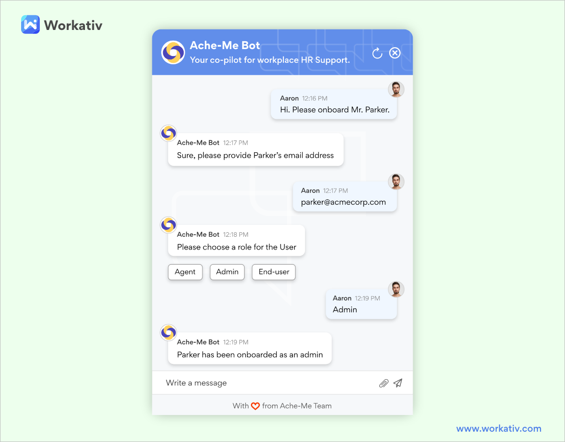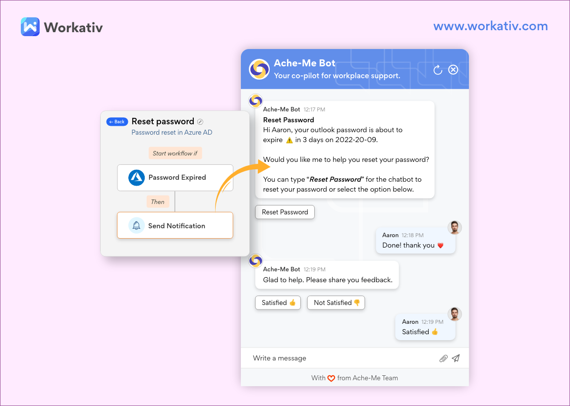Workativ facilitates end-to-end employee collaboration and engagement from onboarding to offboarding. Therefore, Workativ allows you to create as many use cases as you need, improve communications, perform action, and resolve problems to improve productivity at scale.