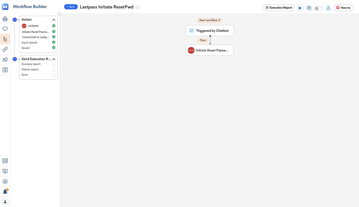 With LastPass + Workativ Assistant integration, you can set up a LastPass chatbot that your employees can use to reset their passwords, on-the-go, 24×7. This enables your support team to spend more time on addressing complex issues and high-value tickets.