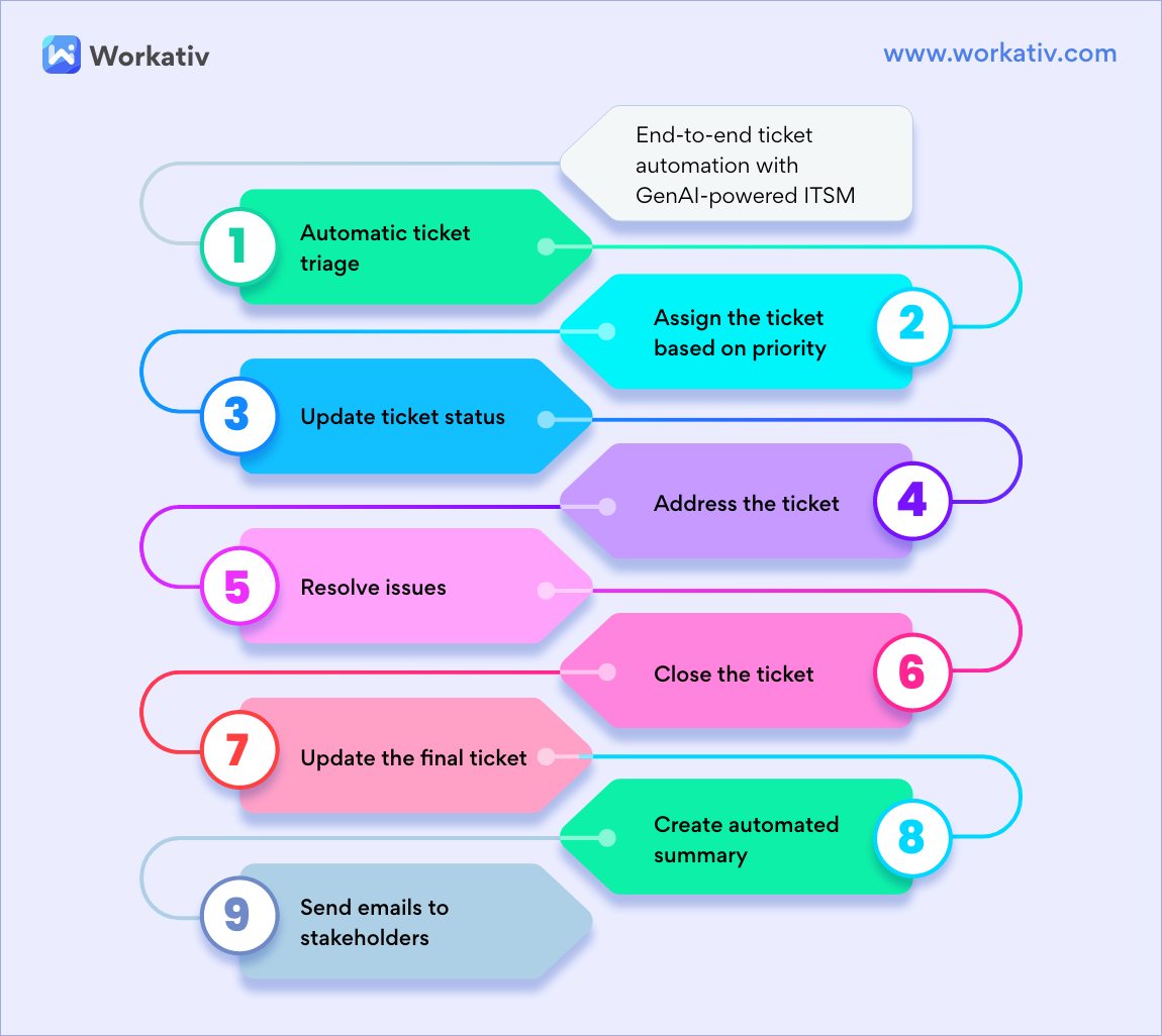 This approach makes Generative AI highly efficient in using predefined and ongoing scenarios from the observation to apply end-to-end ticket automation.